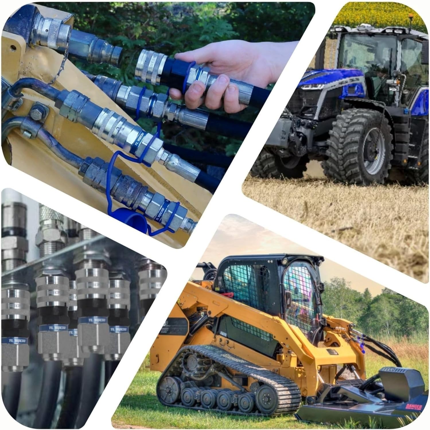 Our couplers interchange with most models of skid steers loaders and other equipment, including: Bobcat, Kubota, CAT, Case, New Holland, John Deere, and others. The flat face valve design really helps minimize fluid loss for a cleaner / safer working environment.